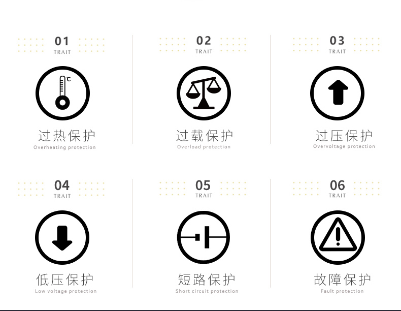 - 保護(hù)功能:過壓,低壓,過載,短路,過熱保護(hù)